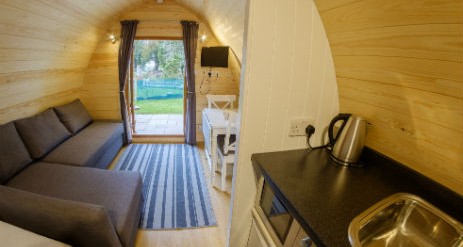 Pod sleeps up to four people. There is a pet friendly pod available and this will incur a surcharge of 430 per dog per night max.